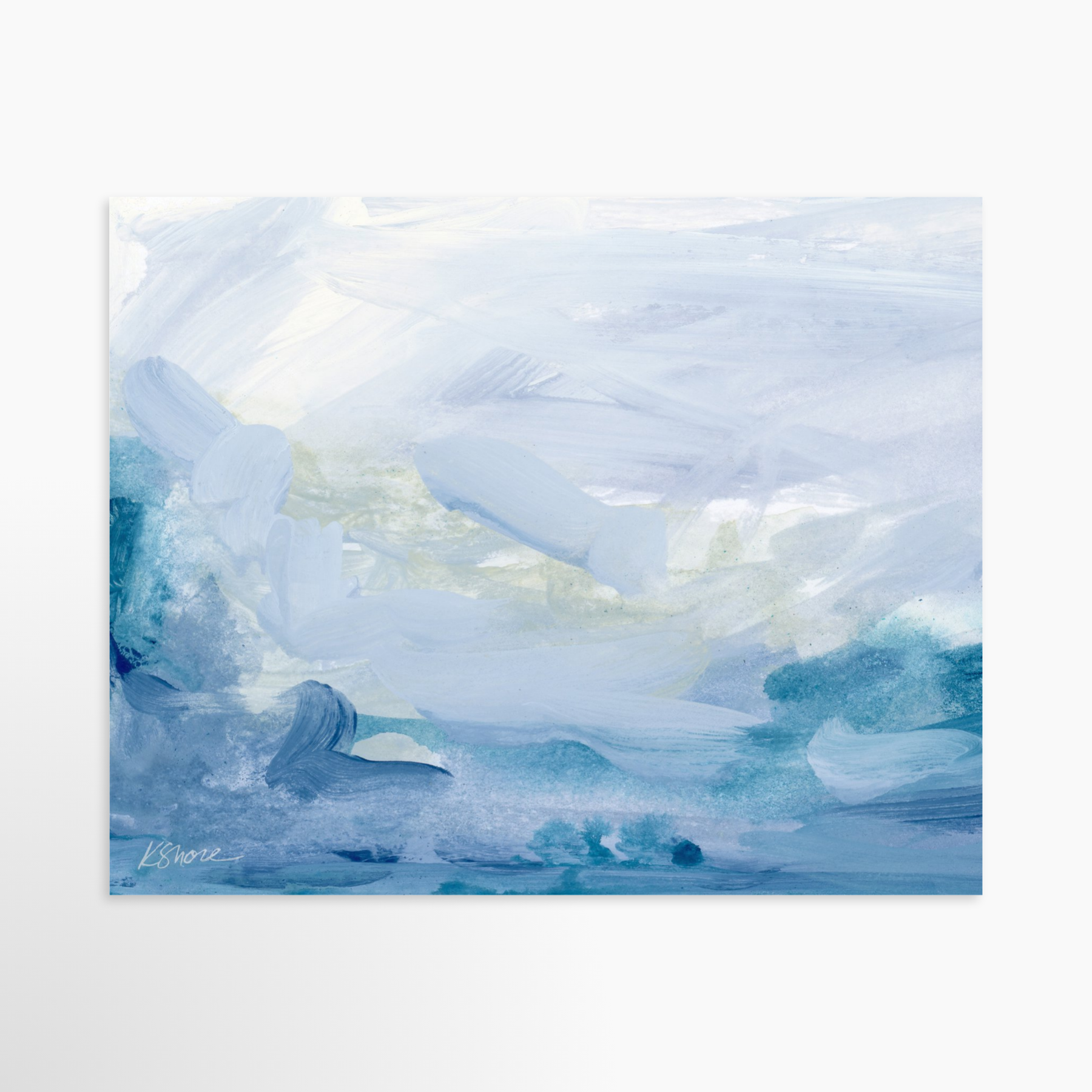 Invite a bit of coastal serenity into your home with this beautiful and tranquil abstract art print.  Featuring a dreamy shades of blue and flowy abstract shapes, Lagoon brings the calming effects of being by the water into any space.
