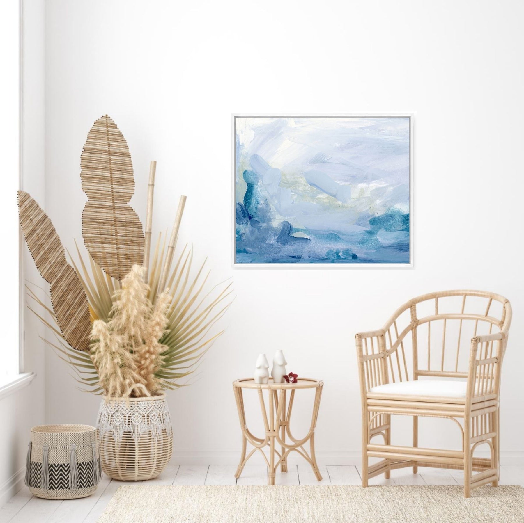 abstract blue painting in coastal room